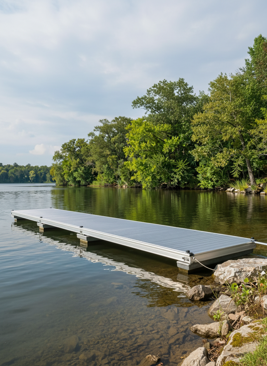 Modular, low-profile platforms engineered for easy water access, perfect for swimming, sunbathing, and launching kayaks.